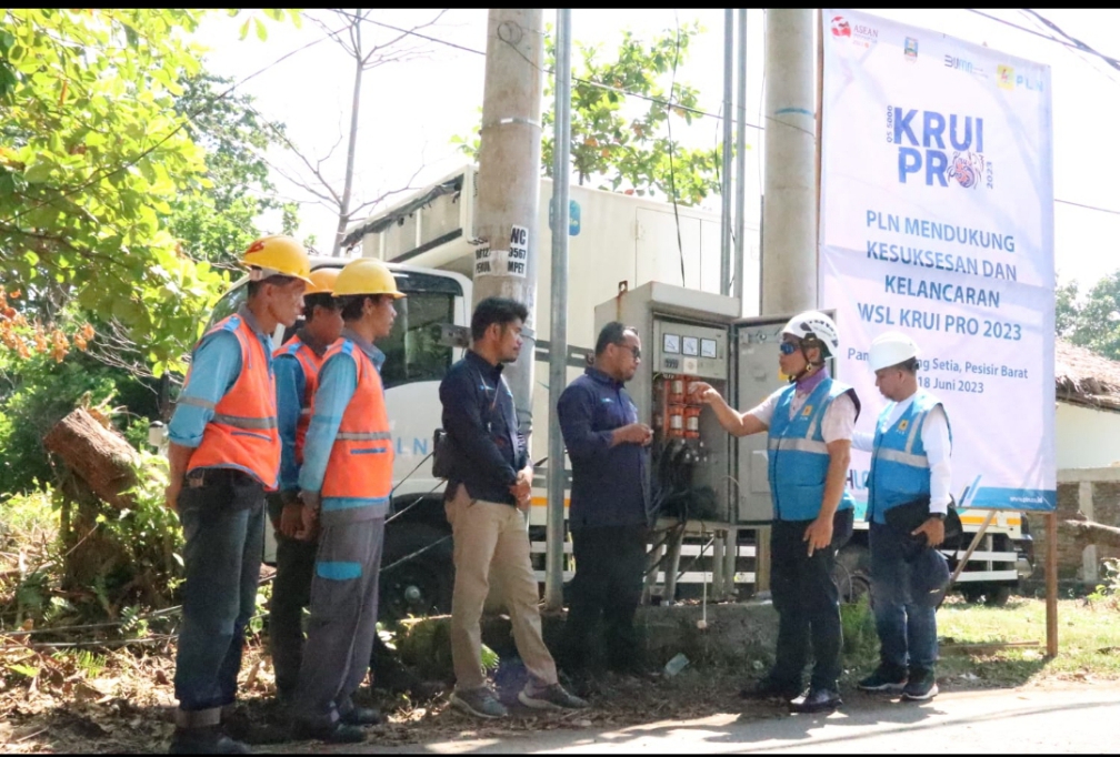 PT PLN (Persero) sukses pasok listrik andal untuk gelaran liga selancar dunia atau World Surf League (WSL) Krui Pro 2023, yang diadakan di Pantai Tanjung Setia, Kabupaten Pesisir Barat, Lampung pada 12 hingga 18 Juni 2023.