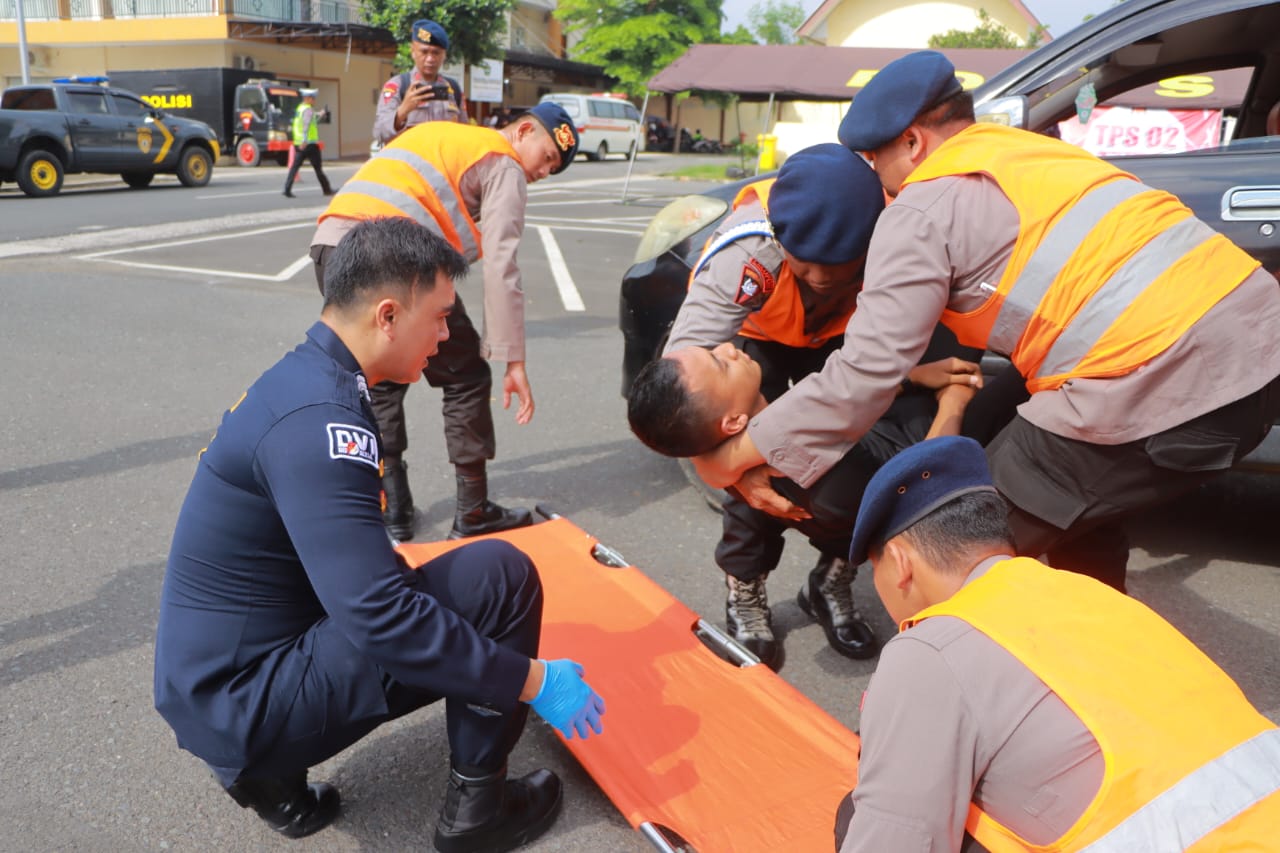 Sebelum pelaksanaan Gelar Operasional 2024 TW I dilaksanakannya simulasi menghadapi bencana alam dan tahapan pelaksanakan Pemilu yang digelar di lapangan apel Polda Lampung.