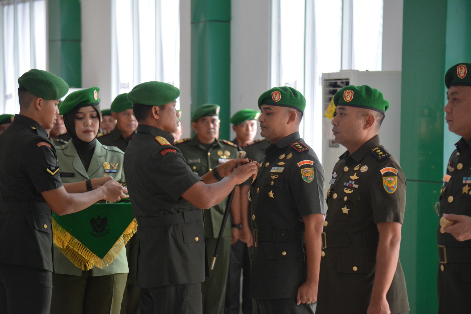 Komandan Korem 043/Gatam Brigjen TNI Iwan Ma’ruf Zainudin, S.E., memimpin acara serah terima jabatan Dandim 0421/Lampung Selatan Letnan Kolonel Inf Fajar Akhirudin, S.I.P., M.Si., Dandim 0426/Tulang Bawang Letnan Kolonel Inf Triano Iqbal, S.I.P., M.Si., dan Dandim 0429/Lampung Timur Letnan Kolonel Czi Indra Puji Triwanto, S.H., jum’at 16 Februari 2024, bertempat di Aula Sudirman Korem 043/Gatam Jl. Teuku Umar Penengahan Bandar Lampung.