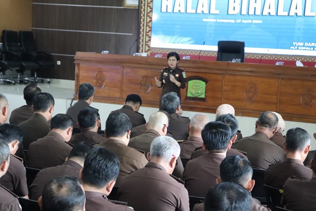 Mengawali arahannya, Plt.Kajati Lampung YUNI DARU WINARSIH, S.H., M.Hum., mengucapkan Selamat Idul Fitri 1445 H, Minal Aidzin wal Faidzin, Taqabbalallahu minna wa minkum, mohon maaf lahir dan batin.