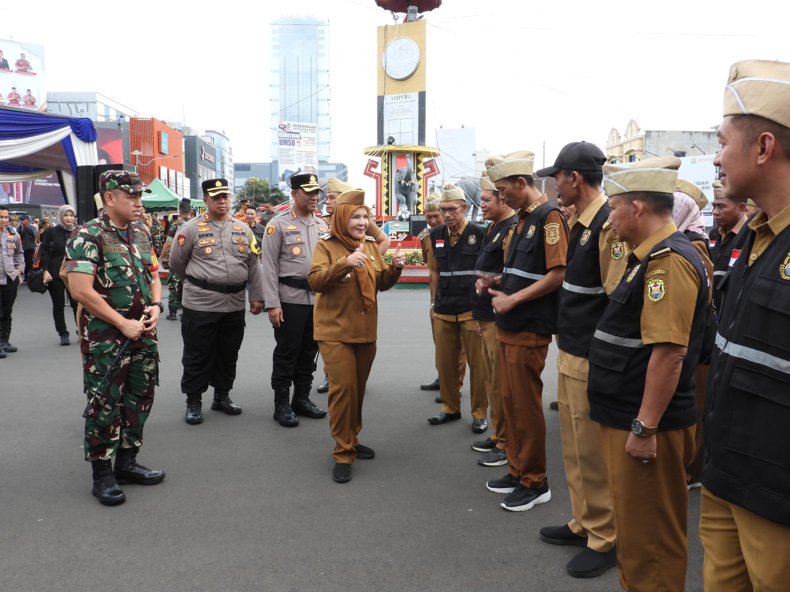 DIKETIKAJA.COM-Pemerintah Kota Bandar Lampung bersama Forkopimda Kota Bandar Lampung menggelar Apel Siaga Satgas Idulfitri 1446 H di Tugu Adipura, Sabtu 29 Maret 2025.